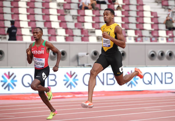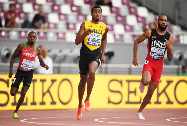 DOHA, QATAR – OCTOBER 01: Alphas Leken Kishoyian of Kenya, Akeem Bloomfield of Jamaica and Machel Cedenio of Trinidad and Tobago compete in the Men’s 400 Metres heats during day five of 17th IAAF World Athletics Championships Doha 2019 at Khalifa International Stadium on October 01, 2019 in Doha, Qatar. (Photo by Matthias Hangst/Getty Images)DOHA, QATAR – OCTOBER 01: Akeem Bloomfield of Jamaica competes in the Men’s 400 Metres heats during day five of 17th IAAF World Athletics Championships Doha 2019 at Khalifa International Stadium on October 01, 2019 in Doha, Qatar. (Photo by Patrick Smith/Getty Images)DOHA, QATAR – OCTOBER 01: Alphas Leken Kishoyian of Kenya and Akeem Bloomfield of Jamaica compete in the Men’s 400 Metres heats during day five of 17th IAAF World Athletics Championships Doha 2019 at Khalifa International Stadium on October 01, 2019 in Doha, Qatar. (Photo by Christian Petersen/Getty Images)