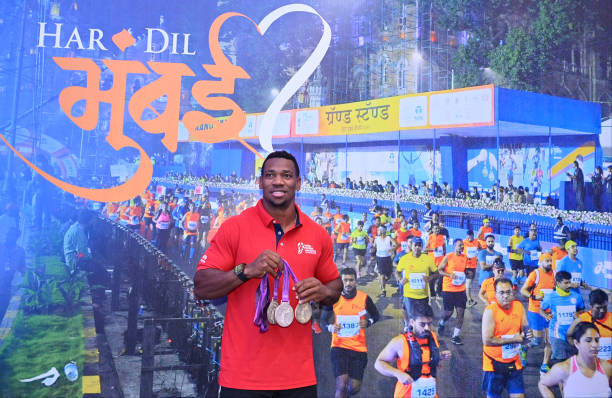 MUMBAI, INDIA – JANUARY 12: Jamaican sprinter and Tata Mumbai Marathon 2023 International Event Ambassador Yohan Blake addressing the media during a press conference at Mumbai Marathi Patarkar Sangh on January 12, 2023 in Mumbai, India. (Photo by Anshuman Poyrekar/Hindustan Times via Getty Images)MUMBAI, INDIA – JANUARY 12: Jamaican sprinter and Tata Mumbai Marathon 2023 International Event Ambassador Yohan Blake addressing the media during a press conference at Mumbai Marathi Patarkar Sangh on January 12, 2023 in Mumbai, India. (Photo by Anshuman Poyrekar/Hindustan Times via Getty Images)