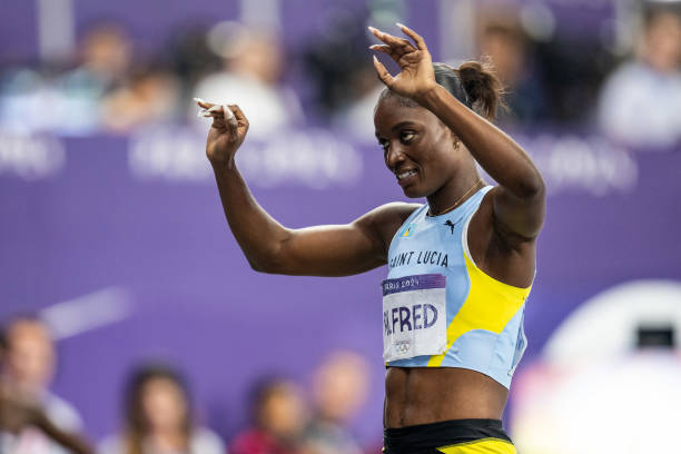 PARIS, FRANCE – AUGUST 6: Silver Medalist Julien Alfred of Team Saint Lucia reacts after competing in the Women’s 200m Final on day eleven of the Olympic Games Paris 2024 at Stade de France on August 6, 2024 in Paris, France. (Photo by Kevin Voigt/GettyImages)PARIS, FRANCE – AUGUST 06: Silver medalist Julien Alfred of Saint Lucia celebrates winning the silver medal after competing in the Women’s 200m Final on day eleven of the Olympic Games Paris 2024 at Stade de France on August 06, 2024 in Paris, France. (Photo by Andy Cheung/Getty Images)