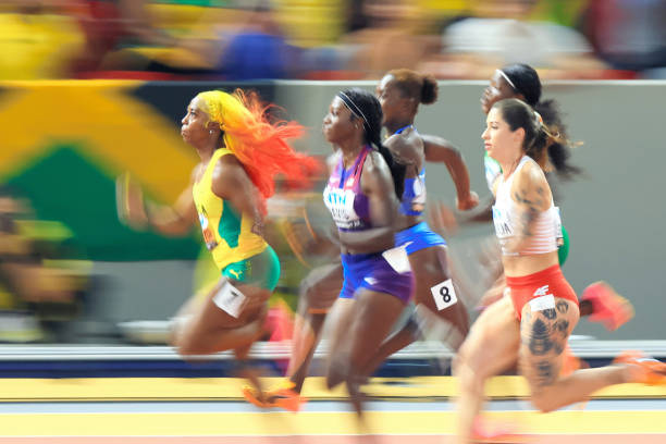 BUDAPEST, HUNGARY – AUGUST 25: Shericka Jackson of Team Jamaica celebrates winning the Women’s 200m Final during day seven of the World Athletics Championships Budapest 2023 at National Athletics Centre on August 25, 2023 in Budapest, Hungary. (Photo by David Ramos/Getty Images)BUDAPEST, HUNGARY – AUGUST 21: Shericka Jackson of Team Jamaica looks after the Women’s 100m Semi-Final during day three of the World Athletics Championships Budapest 2023 at National Athletics Centre on August 21, 2023 in Budapest, Hungary. (Photo by Shaun Botterill/Getty Images)ISTANBUL, TURKEY – MARCH 04: Cyrena Samba-Mayela of France competes during the Women’s 60m Hurdles Round 1 Heat 2 during Day 2 of the European Athletics Indoor Championships at the Atakoy Arena on March 04, 2023 in Istanbul, Turkey. (Photo by Alex Livesey/Getty Images for European Athletics)Cyrena SAMBA-MAYELA of France competes in women’s final 60m hurdles during the French Elite Indoor Championship on February 17, 2024 in Miramas, France. (Photo by Emma Coustham/Icon Sport via Getty Images)